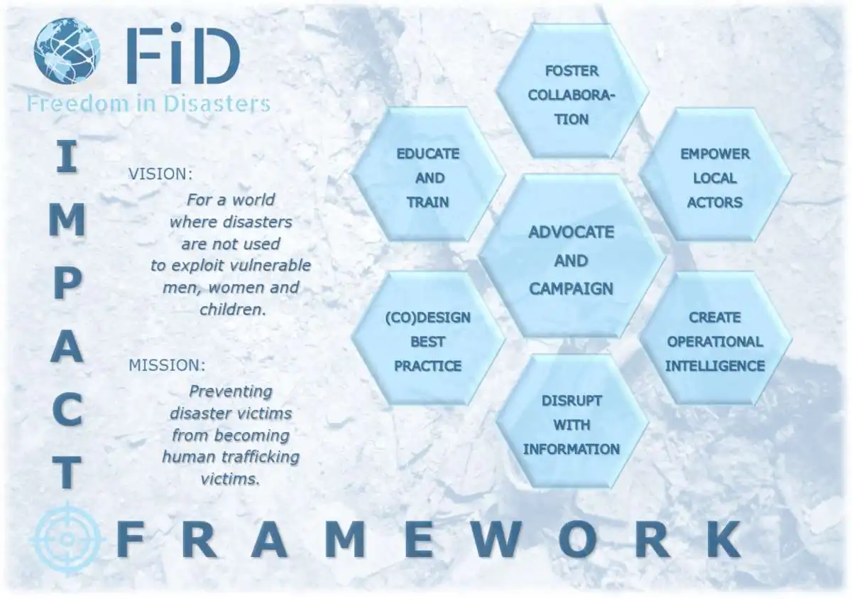 FiD, also known as the International Institute for Counter Trafficking in Disasters, provides a platform to share international best-practice approaches, brings stakeholders together, and enables localised approaches to make an impact.